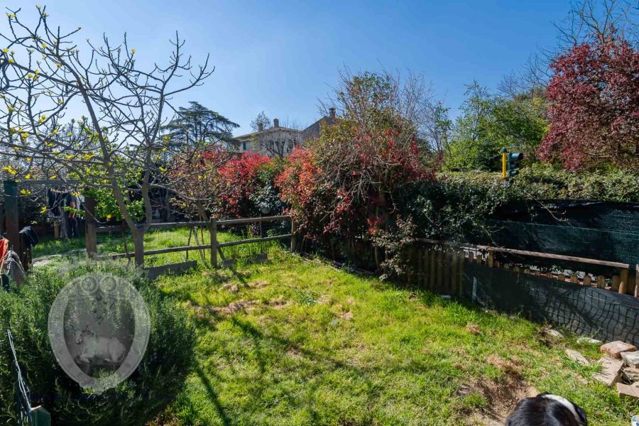 Once you cross the threshold, on the ground floor, there is a spacious living room that includes a dedicated relaxation area complete with a fireplace. Adjacent to it, there is a bright and well-equipped kitchen, next to a bathroom with a shower. A corridor connects this area to the back of the property, where a well-maintained garden extends, featuring a charming stone fountain and a space perfect for moments of relaxation.