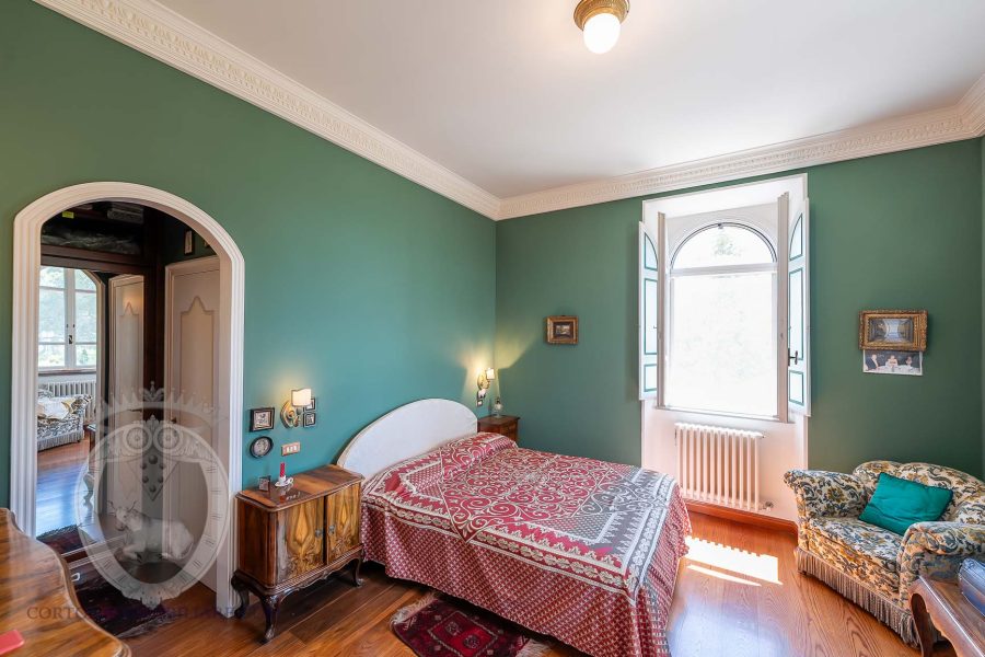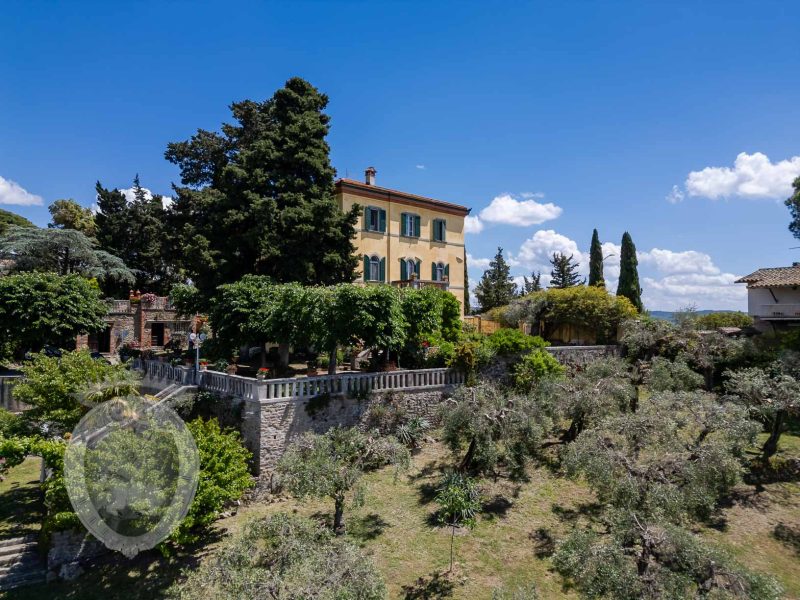 Perched on a hill overlooking the historic village of Passignano sul Trasimeno, Villa Agilla is an Art Nouveau residence that has regained all its original charm thanks to careful conservative restoration. Every architectural element – from the decorated floors to the boiserie, from the glass doors to the parquet faithfully reconstructed thanks to period photographs – has been enhanced with artisanal care. The hand-frescoed walls and period details give the property a rare elegance.