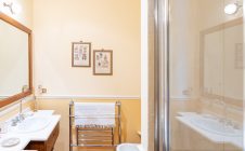 The villa is spread over three main levels, served by an internal elevator, as well as an attic floor. Just a few minutes’ walk from all the services of the center, the property offers extraordinary views of the medieval castle, the waters of Lake Trasimeno and the islands of Maggiore, Minore and Polvese. Completing this postcard-perfect setting: a romantic garden full of roses, stone stairways, shaded dining areas and a private olive grove with around 50 trees.